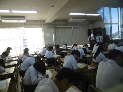 進路指導委員会の資料にもなる大切な第3回実力テストが始まりました。当然ですが、生徒は真剣そのものです。45期生の健闘を祈ります。写真は上から、3年1組、3年2組、3年3組です。