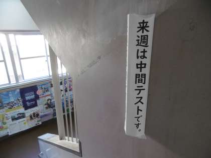 階段に素敵な掲示物が作製されていました。全校生徒はこの掲示物を見て、各教室に向かっています。