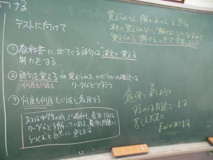 単元の振り返りを静かに行っていました。教科担当の先生が子どもの頃の自分の勉強方法について、熱く語っていました。詳しい内容はお子様にご確認ください。