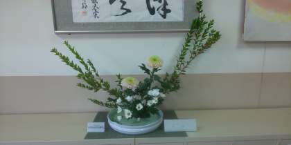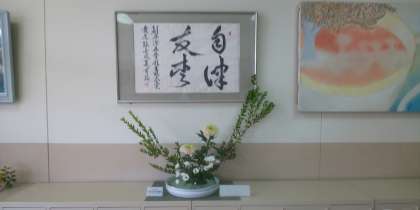 職員玄関に飾られているお花です。定期的に地域の方が朝早く学校に来て、生けてくださっています。これからも地域に愛される学校をめざしていきたいと思います。