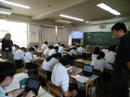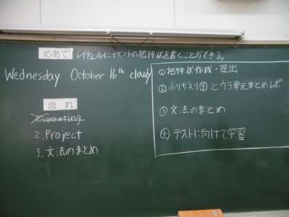 今日も授業のめあてや流れがきちんと黒板に示されていました。教科担当の先生も本校の英語実習助手の先生も質問がしやすい先生で、今日も分からないところがあれば、生徒はすぐに質問をしていました。
