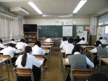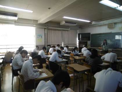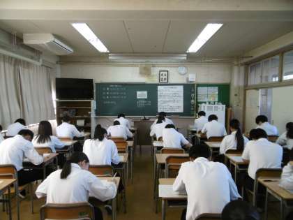 3年生にとっては、自分の進路先を決める大切なテスト。当然のことながら、真剣にテストを受けていました。写真は上から、3年1組、3年2組、3年3組です。