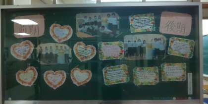 下足室前1階廊下に生徒会用の掲示コーナーがあります。生徒会担当教員が前期・後期の生徒会役員からのメッセージコーナーを作成してくれました。前期生徒会役員からはお礼の挨拶、後期生徒会役員からはこれからの生徒会活動への協力依頼などが書かれていました。みんなで撮った集合写真もあり、素敵な掲示物になっています。来校の際に是非、ご覧ください。