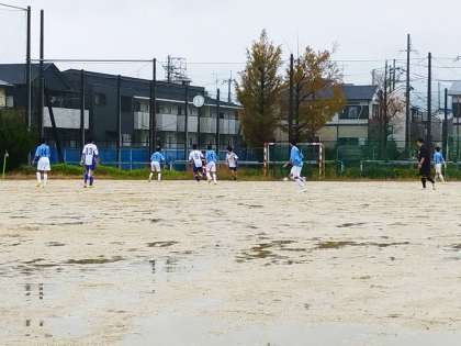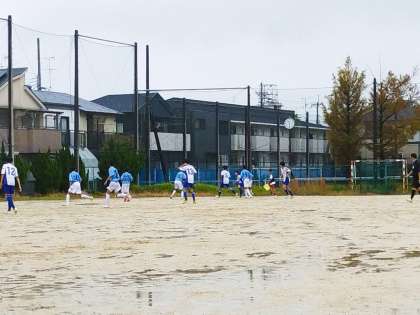 今日は深野中学校との合同チームで枚方市立第3中学校を会場として、庭窪中学校、錦中学校との合同チームと試合をしました。惜しくも3対4で負けました。2失点してから、一時3対2と逆転しましたが、最後に力尽きて逆転負けでした。負けましたが、雨の中よく頑張っていました。