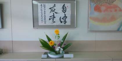 地域の方が定期的に職員玄関にお花をいけてくださっています。今週は2つのお花をいけてくださいました。素敵なお花に生徒も教員も毎日、元気をもらっています。