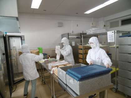 配膳員さんは、全校生徒及び全教職員の給食を75度まで毎日、温めてくれています。配送車の関係で、分刻みの業務を毎日こなしていただいています。いつもありがとうございます。