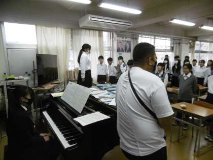 1年生は文化祭で学年合唱を披露しますが、練習を重ねた結果、歌声がぐんぐんよくなっています。学年の先生からもお褒めの言葉がありました。まだまだ仕上がっていくはずです。当日の47期生の歌声をお楽しみに! 指揮者、伴奏者も抜群でした!