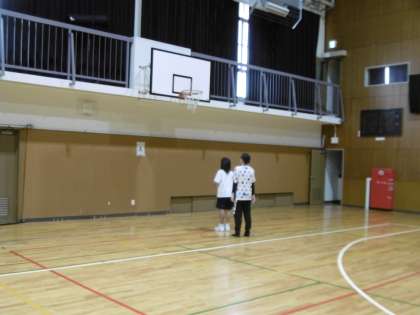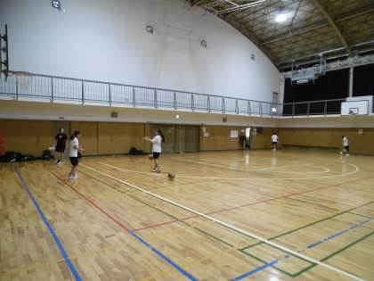 女子バスケットボール部の朝練の様子です。顧問の先生も熱心に生徒に技術指導をしていました。本当によくがんばっているクラブです。