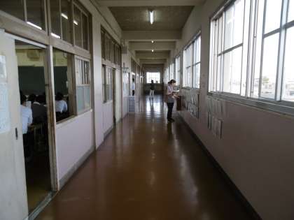 写真は3階廊下(2年生フロアー)の様子です。副担任の先生も本を持って、廊下で生徒と一緒に読んでいます。今日も朝の10分間の静寂ができていました。