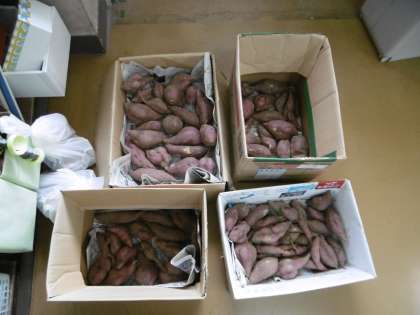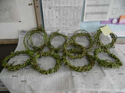 先日行われたイモ掘り体験で取れたサツマイモです。畑にあったつるを使って、クリスマスリースを作ってくれていました。素敵な飾りですね。ありがとう! 本校の介助員さんも生徒と一緒に作業を手伝ってくれました。