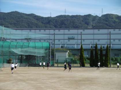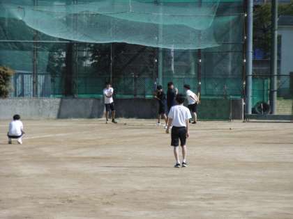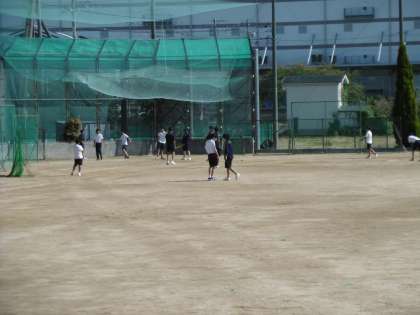 学習内容は「ソフトボール」でした。教科担当の先生も生徒と一緒に試合に参加していました。とてもいい気候に子どもたちも笑顔でした。
