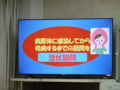 授業のめあては「感染症の広がり方と予防法を理解しよう」でした。来月行われる期末テストの範囲になります。よく復習しておきましょう。
