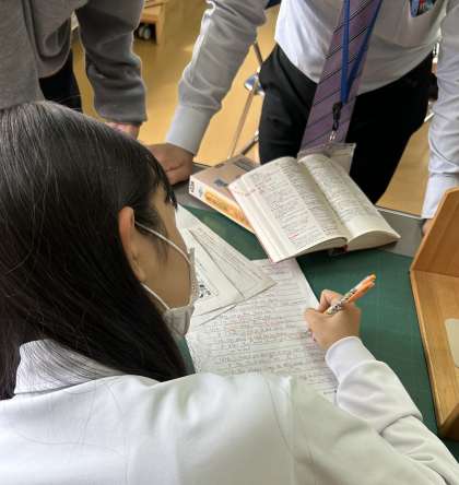 英和辞書を開き、丁寧に取り組んでいました。