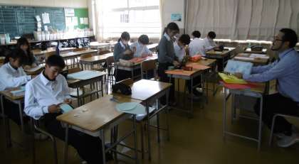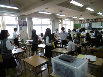 学年合唱の発表で使用する小道具をみんなで作っていました。本番まであと4日。チーム47期生の団結力に期待しています。
