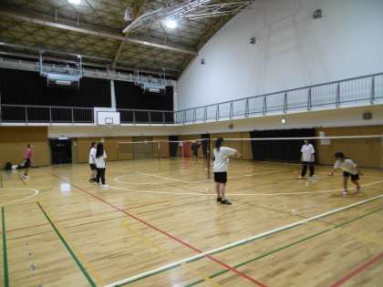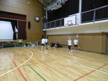 体育館でバドミントン部と女子バスケットボール部が朝練をしていました。気持ちのこもった練習に感心しました。