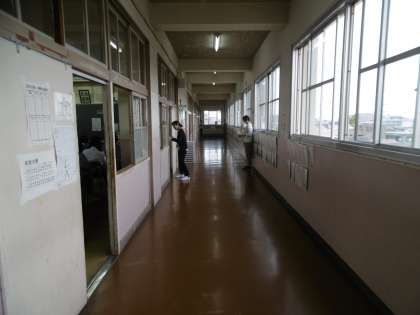 8時30分から10分間行われている朝の読書。管理職を含む副担任も廊下で生徒と一緒に本を読んでいます。朝の10分間の静寂は今日も行われていました。
