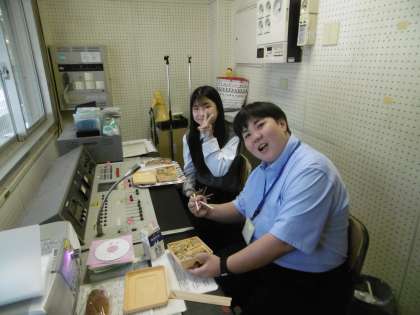 写真2枚目は、今日のお昼の放送を担当した文化委員と1年生の学年主任の先生です。仲良く二人で仕事をしながら、給食を食べていました。