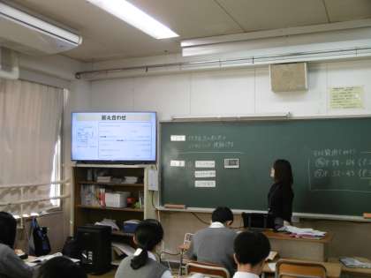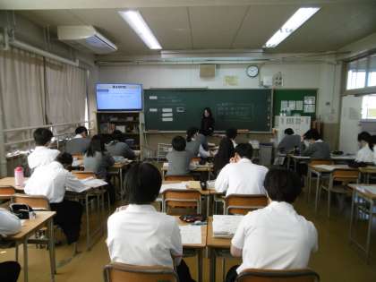 授業のめあては「地方自治の考え方としくみについて理解する」でした。現在、18歳以上に与えられている選挙権の説明を生徒は興味深く聞いていました。