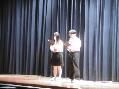 生徒会役員や文化祭実行委員の「みんなを楽しませたい!」、「全校生徒を喜ばせたい!」という熱い思いが十分に伝わってきた最高のオープニングでした。映画泥棒の寸劇は、たくさんの生徒を笑わせていました。