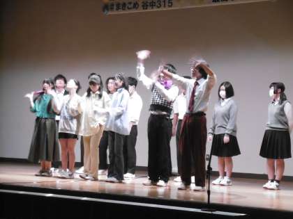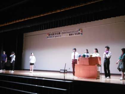 細かな演出や動作、ちょっとした工夫された笑いが随所にちりばめられていました。3年生(最上級生)らしいクラス劇でした。3年生のクラス劇を見て、修学旅行で行った沖縄での一日目の夜のみんなで笑い転げたレクレーションを思い出しました。生徒も先生もみんなでがんばったクラス劇でした。本当によくがんばりました!
