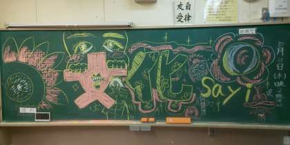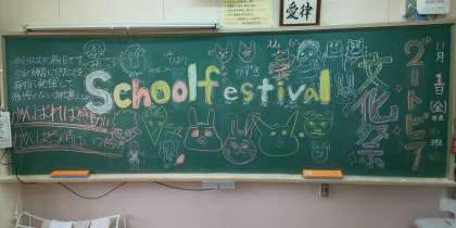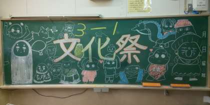 写真は上から、3年1組、3年2組、3年3組です。文化祭当日の朝に教室の黒板に書かれていました。中学校生活最後の文化祭にかける3年生の熱い思いを感じました。