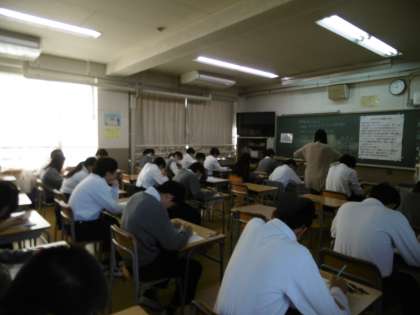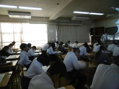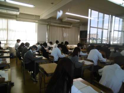 3年生の進路先を決めていく大事な資料のもとになる第4回実力テストが始まりました。どの生徒も真剣そのものです。3年生は11月13日(水)から進路懇談も実施されます。自分の進路について、お家の人とよく話しておきましょう。写真は上から、3年1組、3年2組、3年3組です。