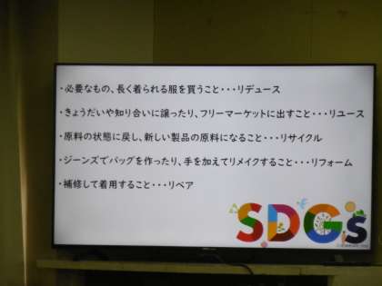 学習内容は「持続可能な衣生活」でした。SDG₂に関連する内容も合わせて、学習していました。