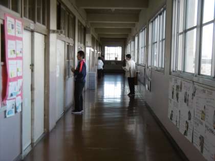 3階(2年生)フロアーと2階(3年生)フロアーの様子です。管理職も含めて、朝の読書(10分間)の時間は、副担任も廊下で生徒一緒に本を読んでいます。