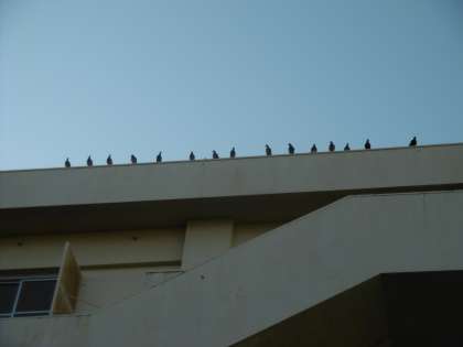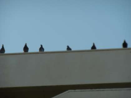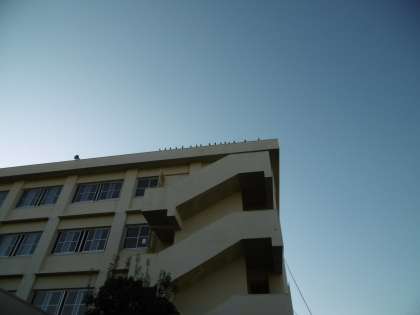 朝、正門であいさつ運動をしていると、鳩が校舎に十数羽止まっていました。初めて見る光景でした。