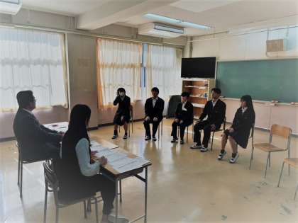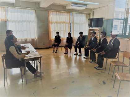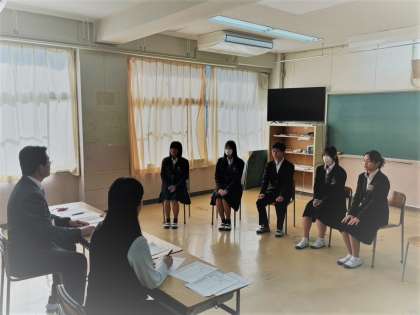 入試対策として、校長面接を行いました。今日から3日間、1組から行います。各クラス5つのグループに分け、15分間の模擬面接を行いました。緊張しながらも一生懸命に答えようとする45期生の姿に心から感心しました。