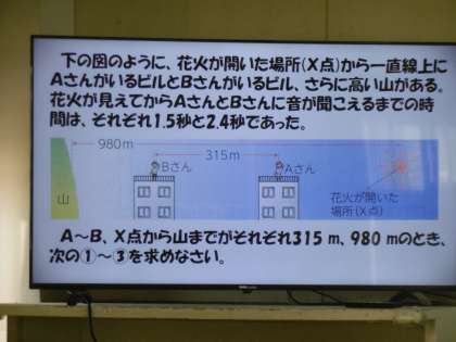 学習内容は「音の速さ」でした。今日も分かりやすい学習プリントと説明用のパワーポイントが用意されていました。午後の授業でしたが、生徒はとてもよくがんばっていました。