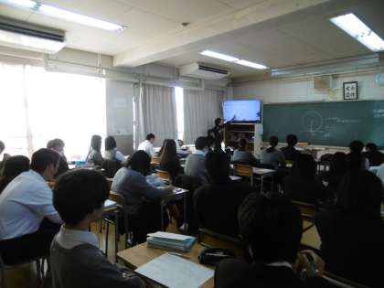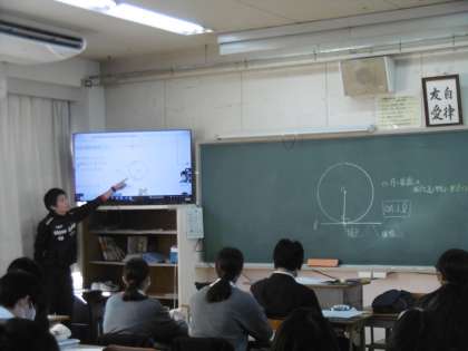 学習内容は、円周角の定理と接線の性質を使った「接弦定理」でした。全員が真剣なまなざしで授業を受けていました。授業を見ていても、緊張感が伝わってくるほどです。
