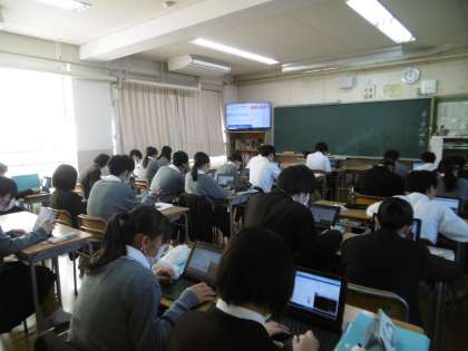 学習内容は「プログラミング」でした。タブレットパソコンに配信された教材を使って、生徒は実際にプログラミングを行っていました。集中して黙々と課題に向かう45期生の態度に本当に感心しました。