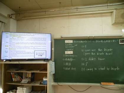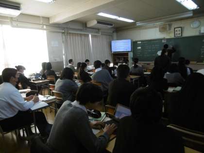 授業のめあては「英文の仕組みをマスターし、自分の考えを英語で書く」でした。テストが終わっても、変わらない授業態度に好感がもてました。