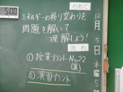「エネルギーの移り変わりを問題を解いて覚えよう」が授業のめあてでした。2学期の登校日数もあと14日になりました。いい形で2学期の締めくくりをして、3学期に備えてほしいと思います。