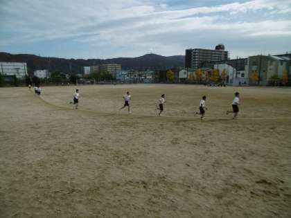 学習内容は「持久走」でした。教科担当の先生の計時をしている声がグラウンドに鳴り響いていました。子どもたちは、最後まで本当によくがんばっていました。
