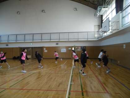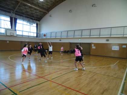 女子バスケットボール部が朝練をしていました。明日の北河内大会での健闘を祈ります。