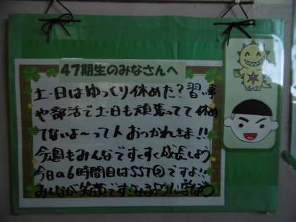 4階の掲示物です。1年生の学年主任の先生からのメッセージでした。
