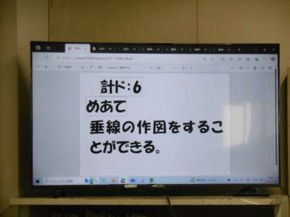 学習内容は「垂線の作図」でした。直線を引くための定規と円を書くためのコンパスがあれば、6つの角度を作図することができます。