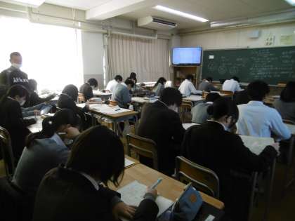 実力テスト対策プリントを懸命に解いていました。私立入試まで2か月を切りました。