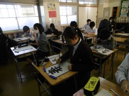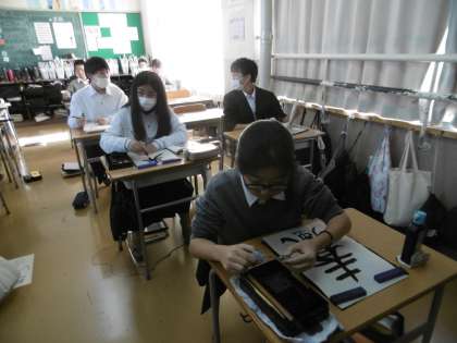 習字を行っていました。黙々と課題に向き合っている47期生に感心しました。自分の思い描く通りに、上手に書けたでしょうか。