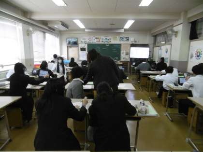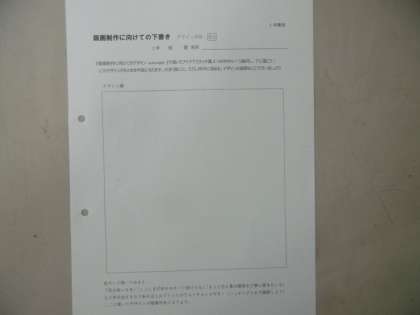 授業のめあては「版画制作に向けて、白黒でデザインを描くことができる」でした。静かに子どもたちは作業を進めていました。
