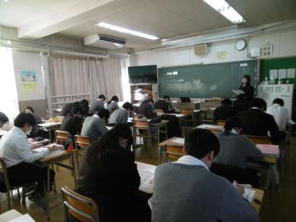 写真は入試対策プリントをしているところです。全員が集中して問題を解いていました。本当に静かな教室に感心しました。