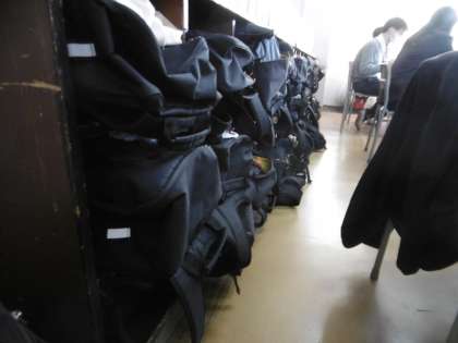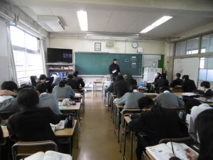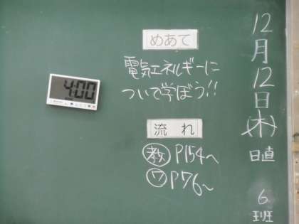 授業のめあては「電気エネルギーについて学ぼう」でした。生徒は教科担当の先生の説明を静かによく聞いていました。教室にある通学カバンがロッカーにきれいに整頓されていました。