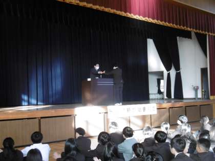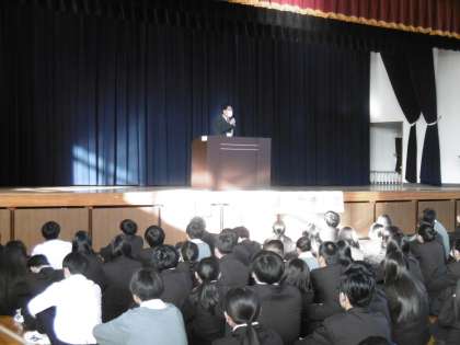 校長からは「3学期を次年度への準備期間とする0学期と考えよう」と生徒に話をしました。合わせて、3年生には「受験を登山に例えて、苦しいけれど登り切ろう」、2年生には「2学期に学年で学習した夜間中学校の取り組みを今後の自分の学校生活に生かそう」と伝えました。1年生には、上級生(2・3年生)の受験に向かう姿を是非、しっかり見ておいてほしいと言いました。