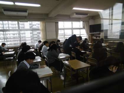 今日の大阪府チャレンジテスト実施に向けて、一昨日教員で打ち合わせを行いました。また、生徒が持っている力を遺憾なく発揮できるように、教室環境整備等の準備を昨日、全員で行いました。大阪府チャレンジテストの結果は、後日生徒一人ひとりに個人票で提供されます。