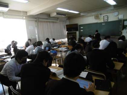 静かに「授業の振り返り」を行っていました。感染症対策(換気、うがい、手洗い)をしながら、どの教室でも授業が行われています。