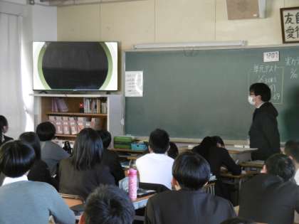 卵の強度を表す動画が紹介されていました。全員が真剣に集中して映像を見ている姿に、心から感動しました。やはり、46期生は集中力のある学年です。