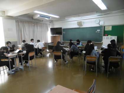入試問題をみんなで解いていました。いよいよ入試が迫ってきました。教科担当の先生への質問も随分増えました。体調管理にも十分に注意しましょう。
