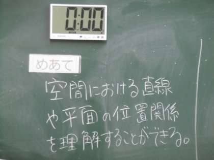 学習内容は「空間図形」でした。空間における直線や平面図形の位置などに関する学習でした。空間内で交わる2直線の位置関係を表す「ねじれの位置」についても学びました。